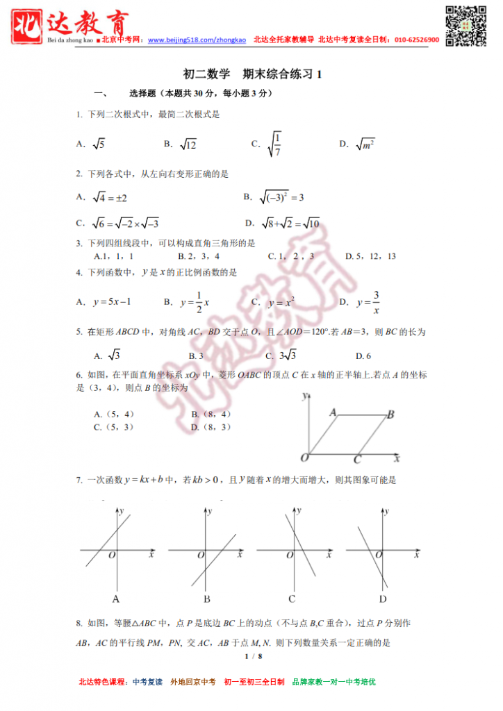 北京八十中学202206初二下数学期末综合练习1(高清版)。admw360中考复读学校教研组收集整理,分享给大家。