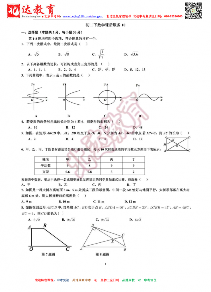 北京人大附中分校202206八下期末数学模拟试题(高清版)。admw360中考复读学校教研组收集整理,分享给大家。