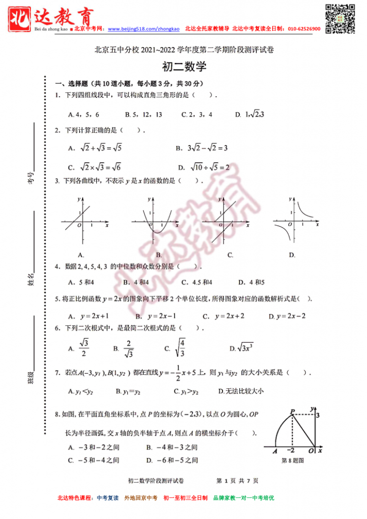 北京五中分校202206初二下期末模拟数学练习(高清版)。admw360中考复读学校教研组收集整理,分享给大家。