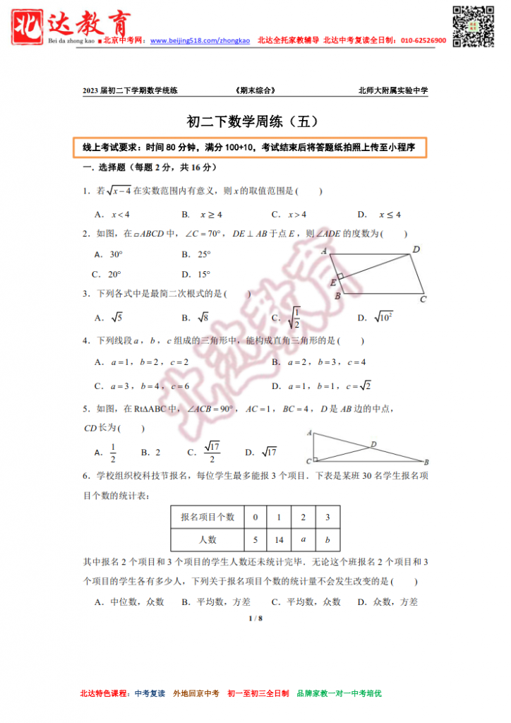 北师大附实验20220623初二下数学周练5(高清版)。admw360中考复读学校教研组收集整理,分享给大家。