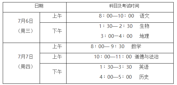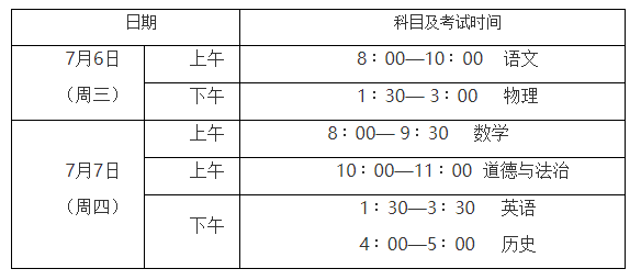东城区:非毕业年级7月5日~7日,毕业班6月29和30日,29日语文,30日数学和英语;