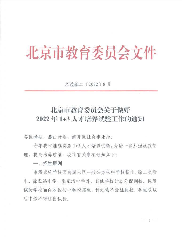 招生多少人?北京市教委关于做好2022年1+3项目人才培养试验工作的通知发布!admw360中考复读学校教研组收集整理,分享给大家。