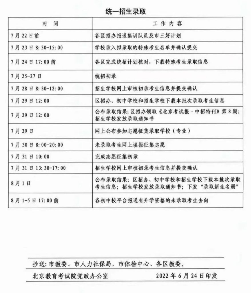2022北京中考四个批次什么时候发榜?中招日程安排有哪些?admw360中考复读学校教研组收集整理,分享给大家。