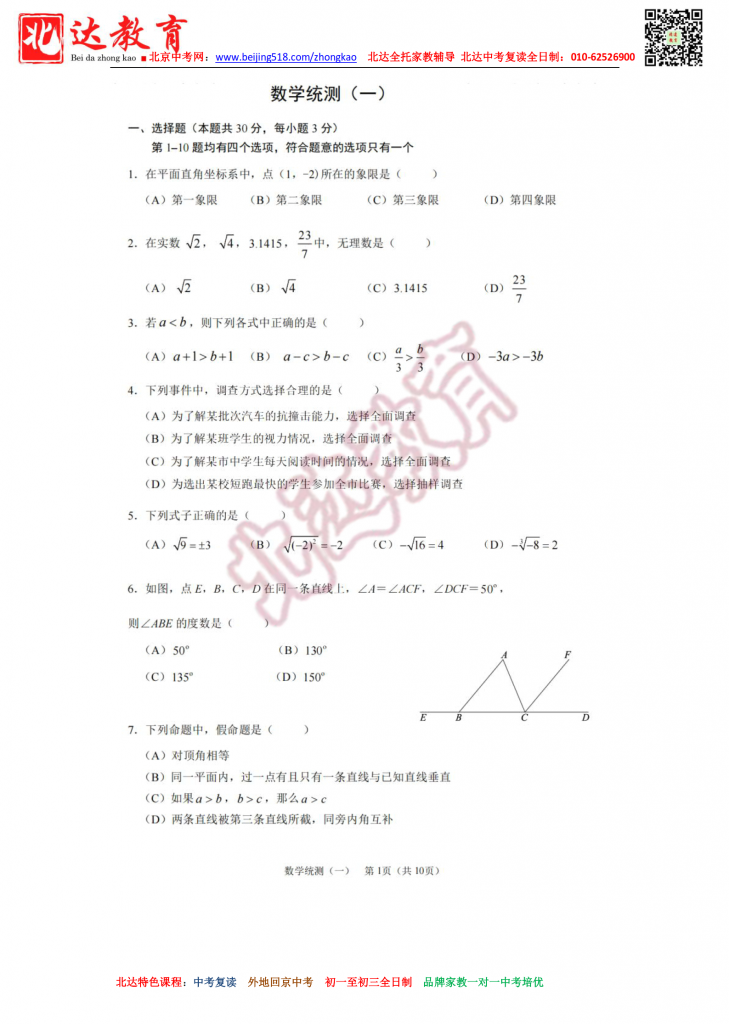 北京十四中2022初一下数学期末统测(一)(高清版)。admw360中考复读学校教研组收集整理,分享给大家。