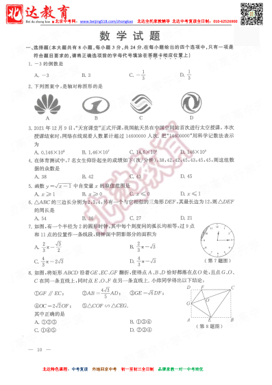 新疆维吾尔自治区2022年中考各科试题及参考答案