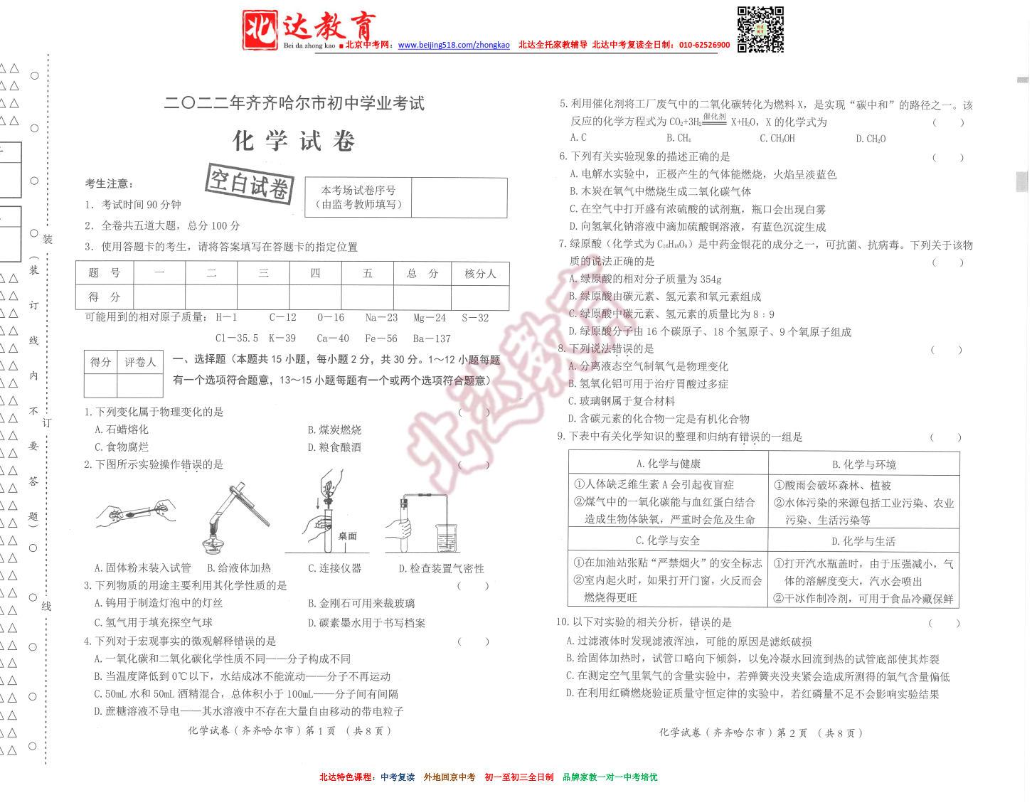 2022年黑龙江省齐齐哈尔市中考各科试题及答案