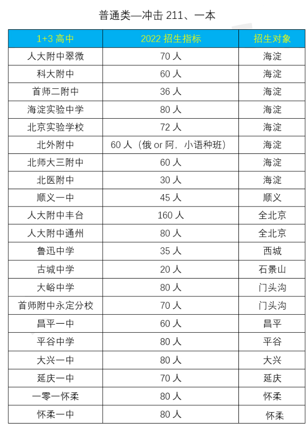 1+3项目分为市级和区级,市级是城六区一般公办初中学生都可以报名,而区级只有本区学生可以报名。