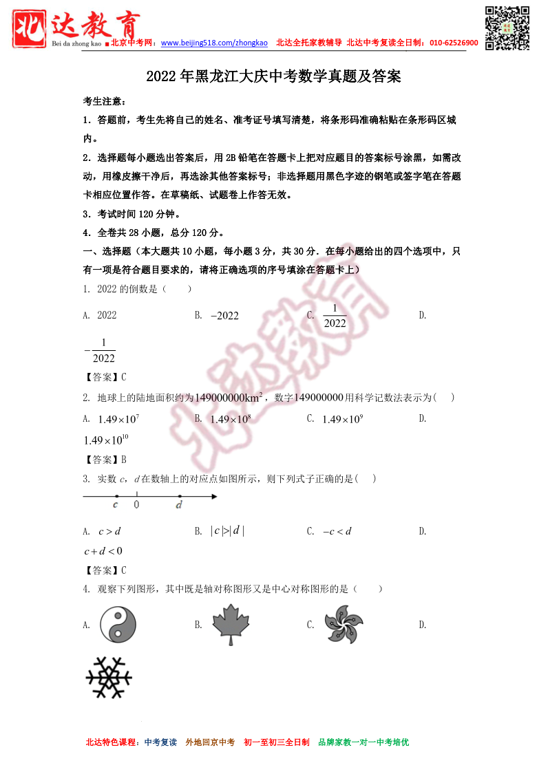 2022年黑龙江省大庆市中考试题及答案汇总。admw360教研组收集整理,分享给大家。