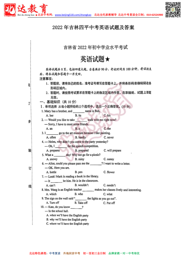 2022年吉林省四平市中考试题及答案汇总。admw360教研组收集整理,分享给大家。