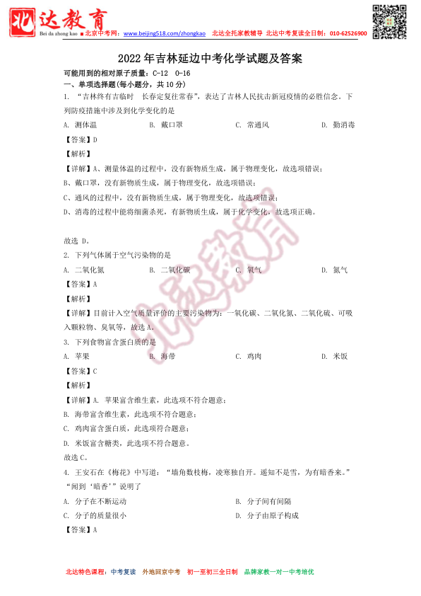 2022年吉林省延边市中考试题及答案汇总。admw360教研组收集整理,分享给大家。
