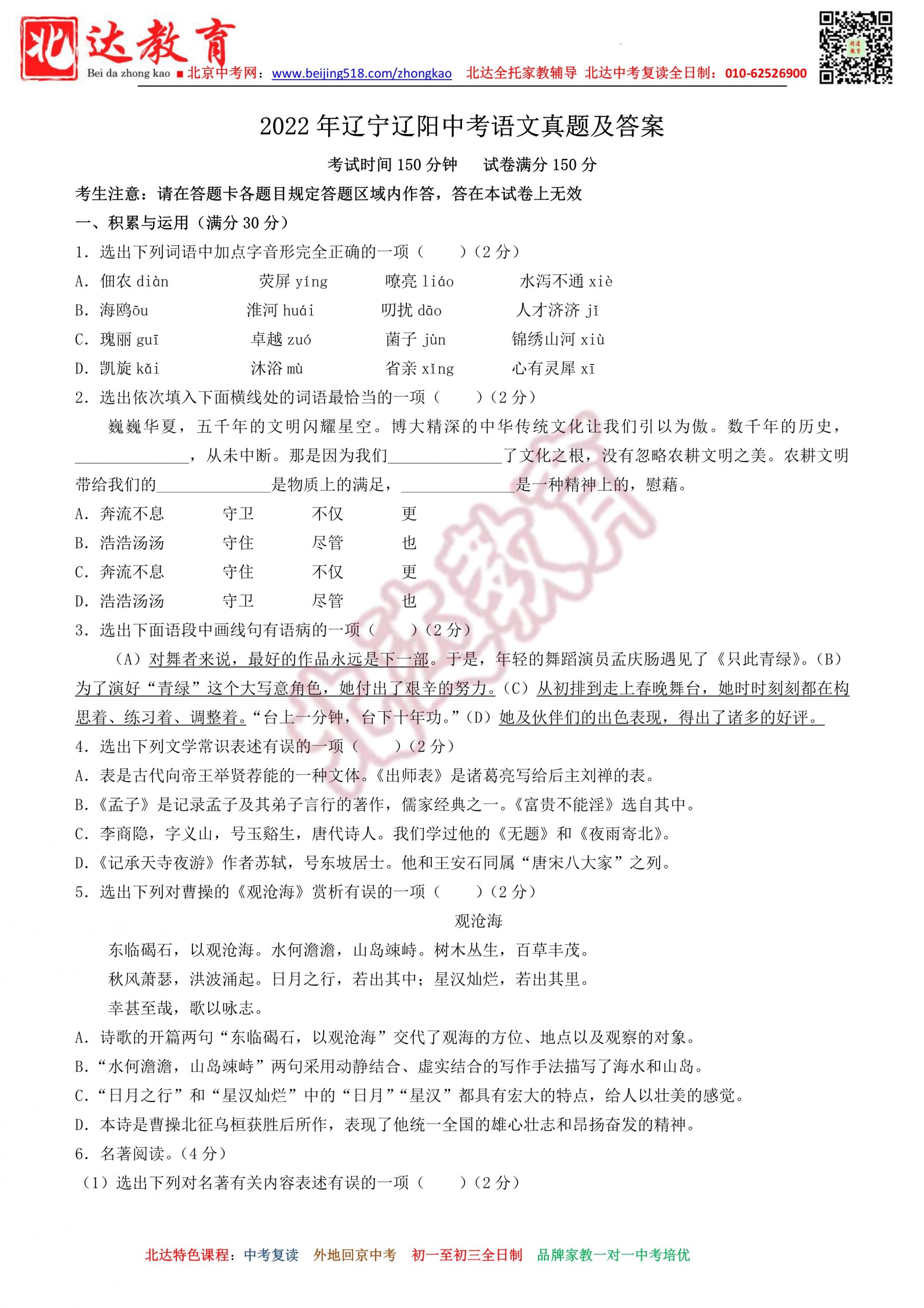 2022年辽宁省辽阳市葫芦岛中考试题及答案汇总。admw360教研组收集整理,分享给大家。