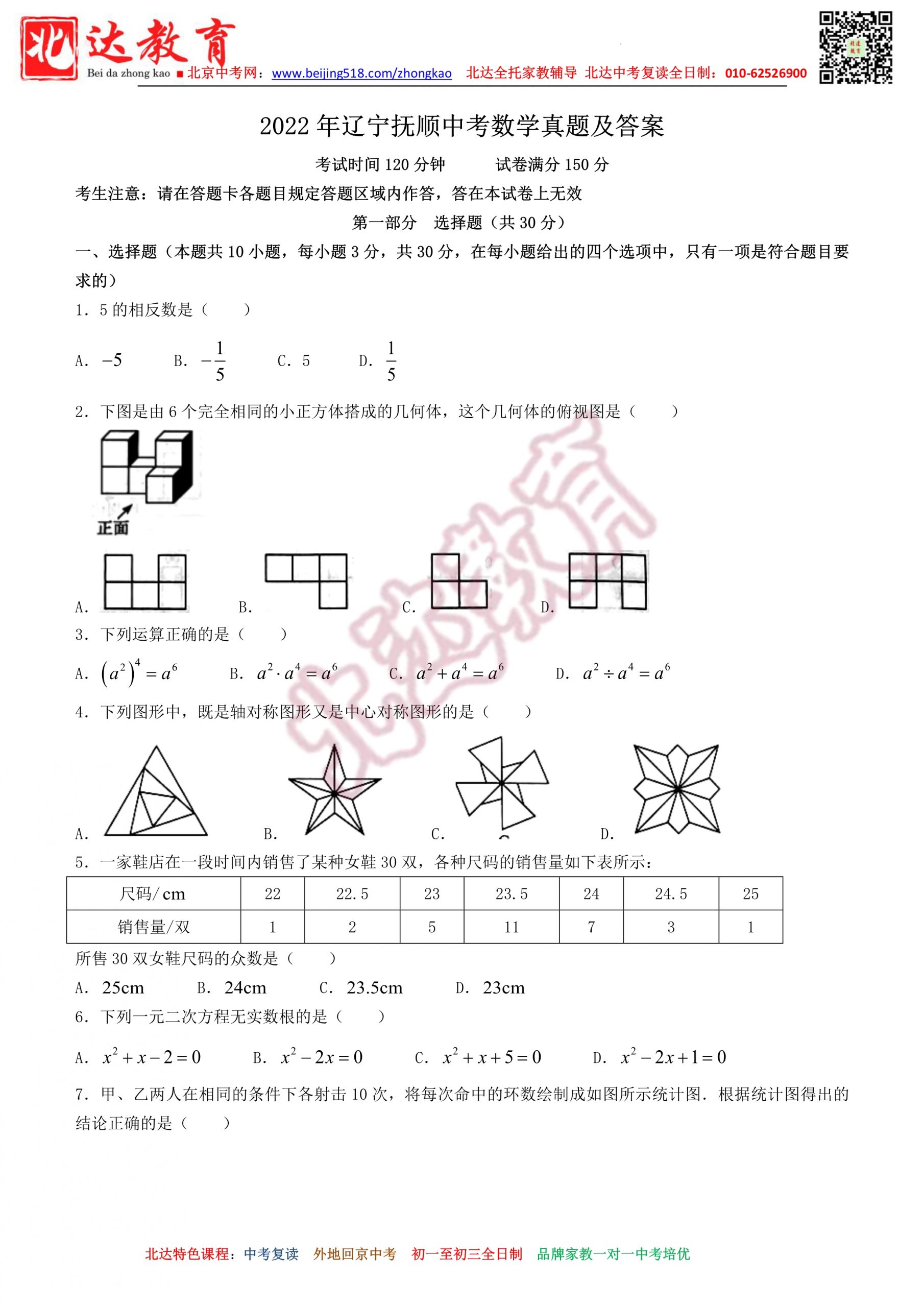 2022年辽宁省抚顺市中考试题及答案汇总。admw360教研组收集整理,分享给大家。