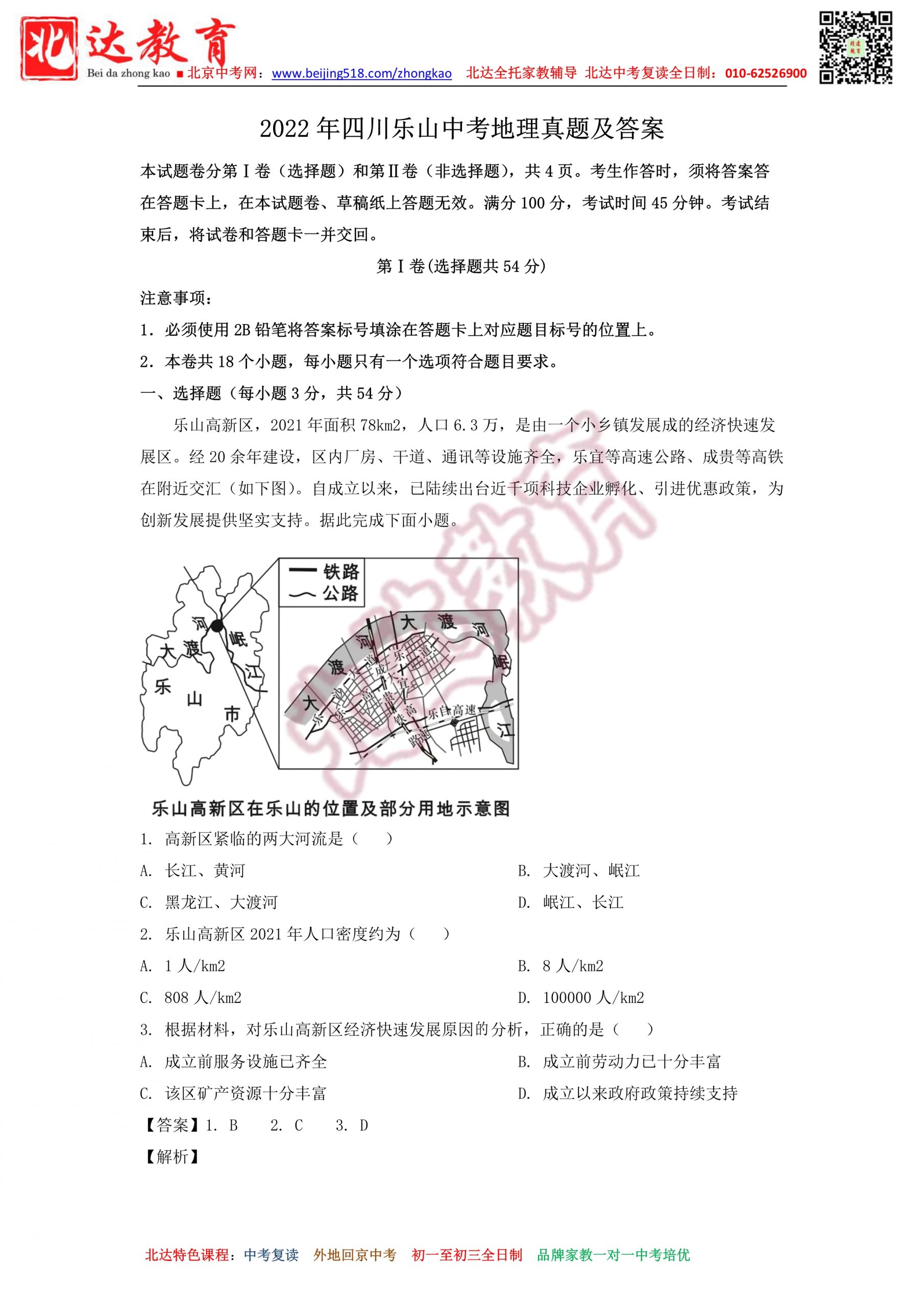2022年四川乐山中考试题及答案汇总。admw360教研组收集整理,分享给大家。