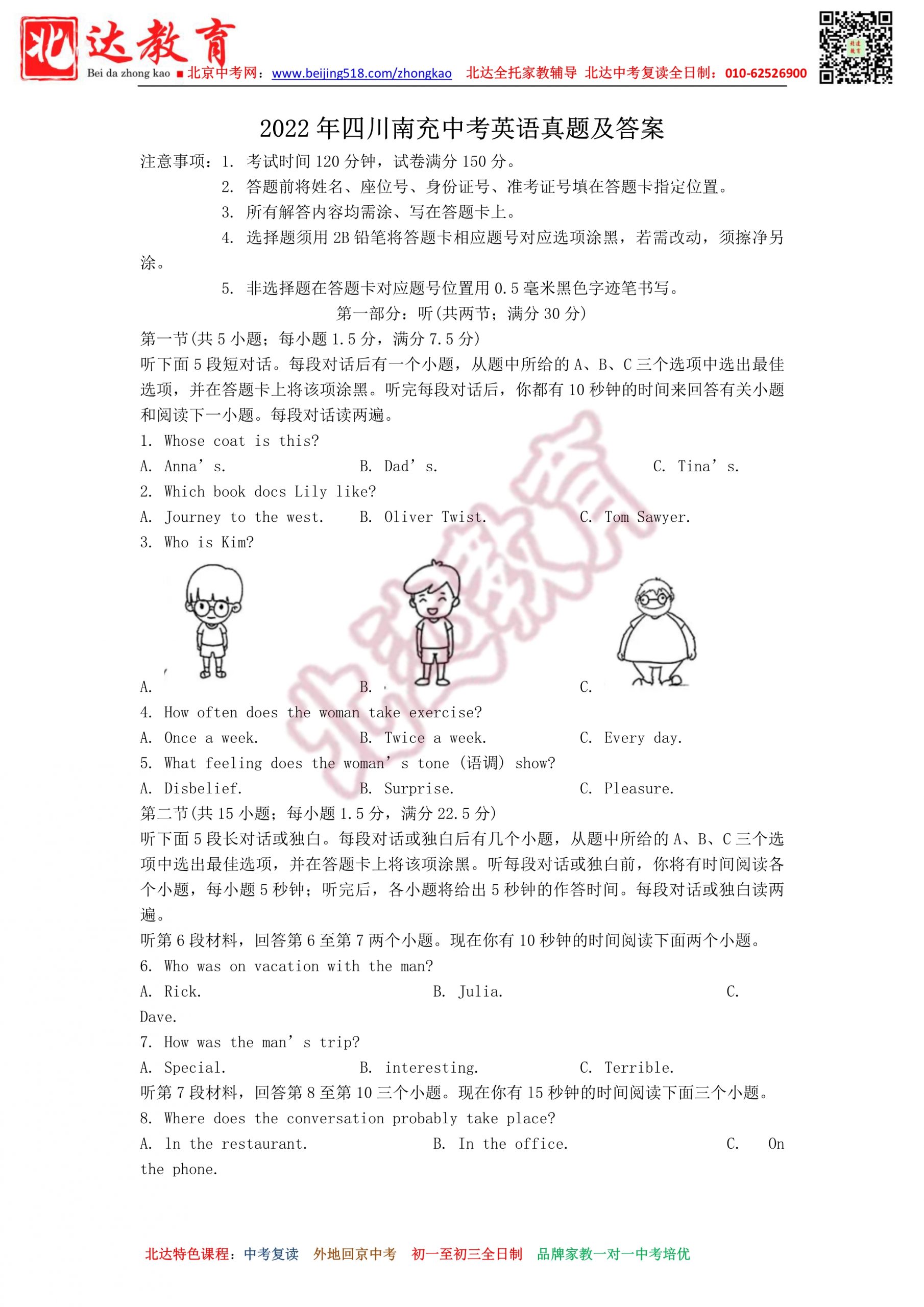 2022年四川南充中考试题及答案汇总。admw360教研组收集整理,分享给大家。