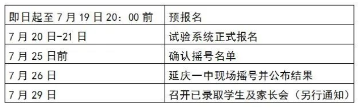 延庆一中对报名学生进行确认,于7月25日前公布可参加摇号学生名单,并在学校南门公示栏、延庆一中微信公众号进行公示。