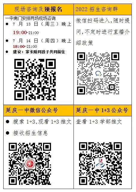 即日起~7月19日20:00,有意报名延庆一中1+3项目的学生须预报名,由于防疫要求需要,不再收取纸质版材料,学生需要将以下材料打印,手写后拍照,上传至指定预报名系统。
