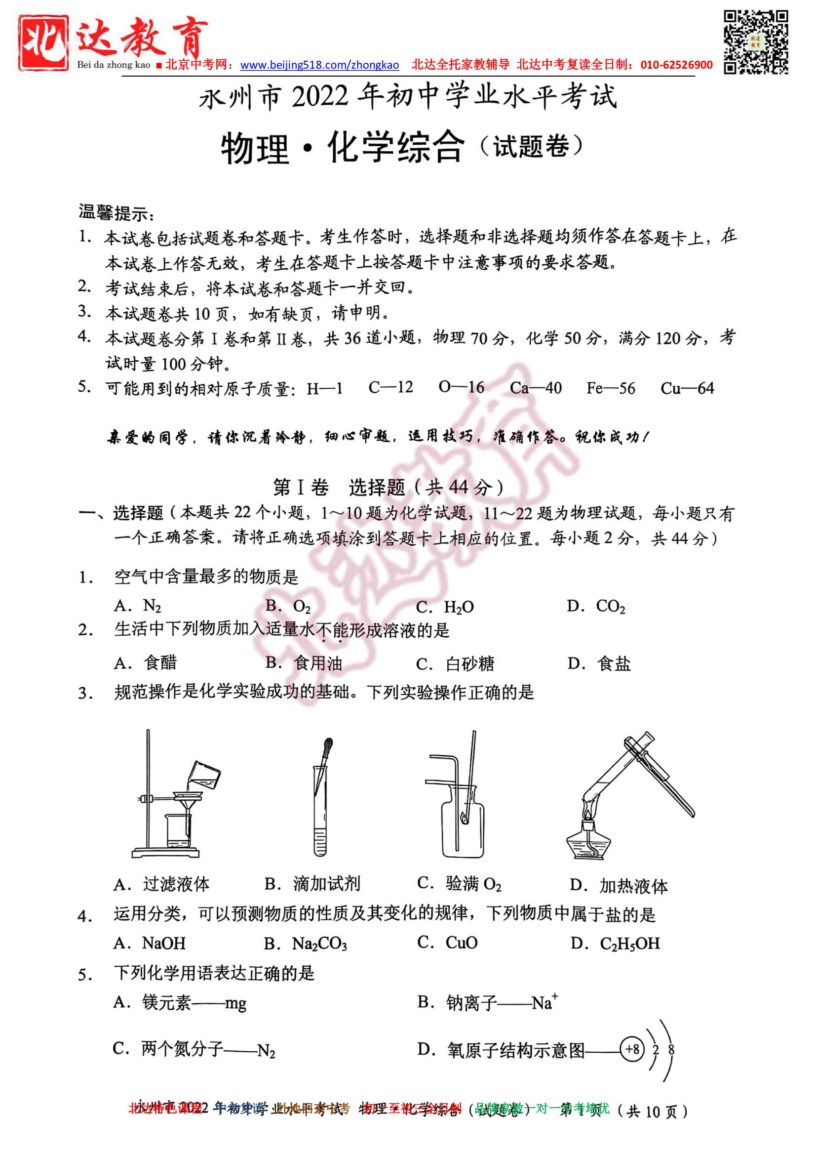 2022年湖南永州中考试题及答案汇总。admw360教研组收集整理,分享给大家。