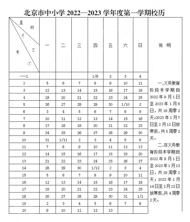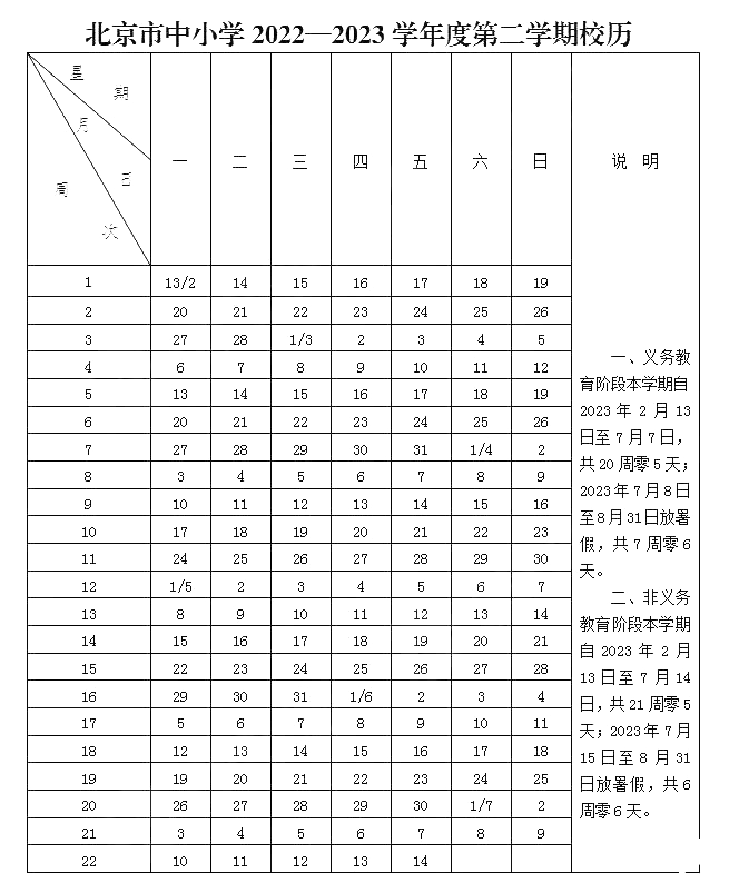 寒假:2023年1月14日(星期六)–2月12日(星期日)寒假,共4周零2天。