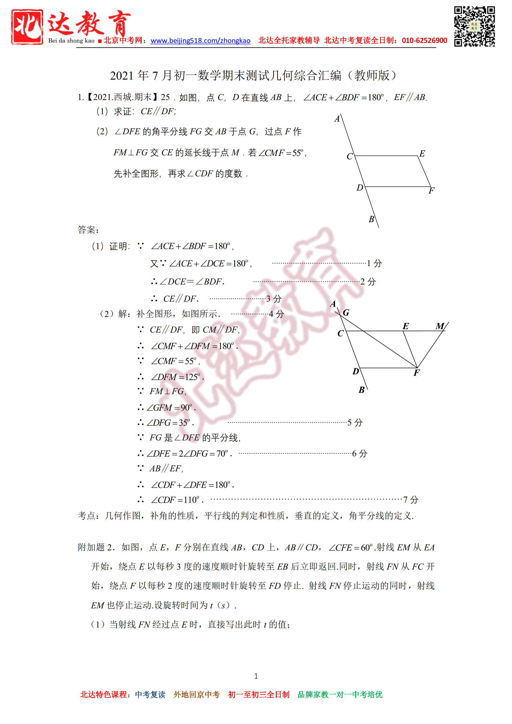 北京2021初一下期末考试分类汇编几何综合。admw360教研组收集整理,分享给大家。
