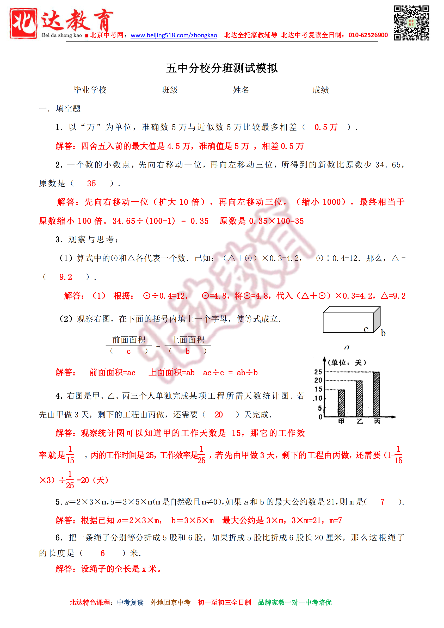 北京五中历年新初一分班考试题及答案!北京admw360教研组整理分享相关信息,供大家参考。