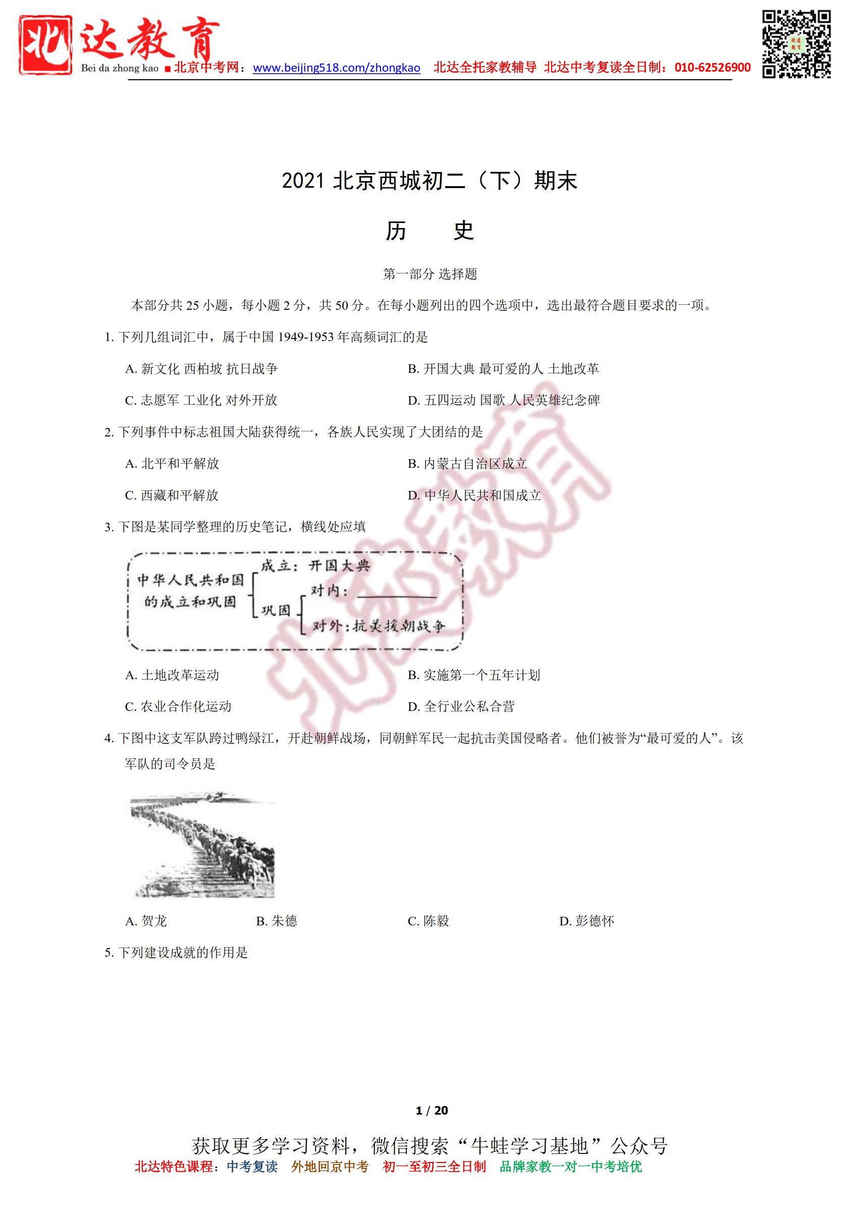 2021北京房山初二(下)期末历史及答案.pdf