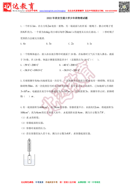 2022年西安交通大学少年试题及答案!北京admw360教研组整理分享相关信息,供大家参考。