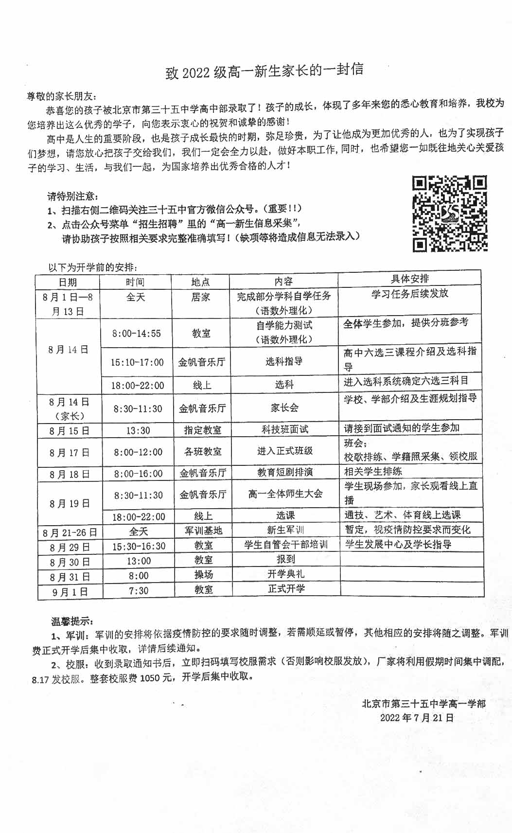 2022年北京三十五中新高一入学安排!北京admw360教研组整理分享相关信息,供大家参考。