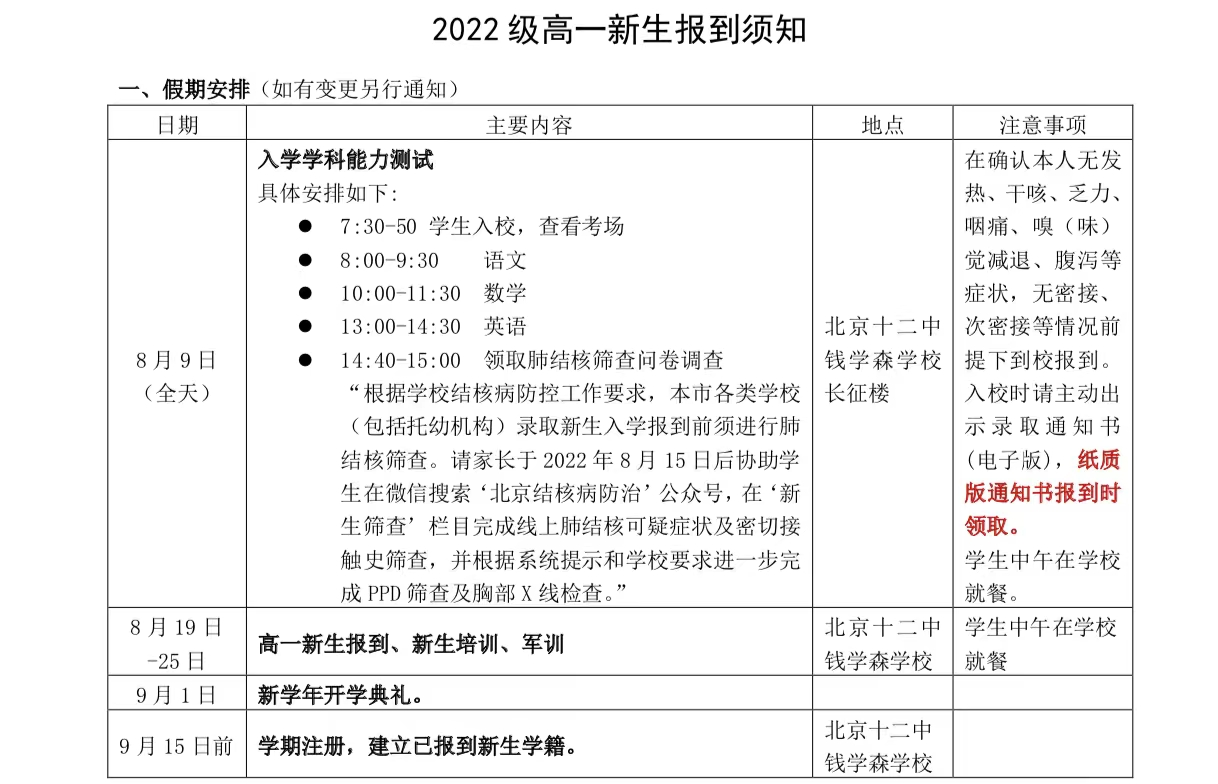 2022年北京十二中钱学森学校新高一入学测试安排!北京admw360教研组整理分享相关信息,供大家参考。