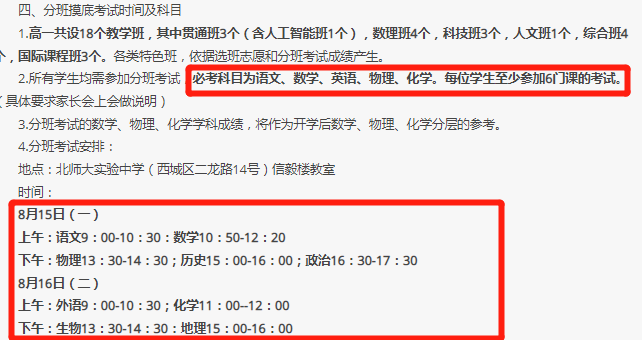 2022北师大实验新高一入学测试时间安排!北京admw360教研组整理分享相关信息,供大家参考。
