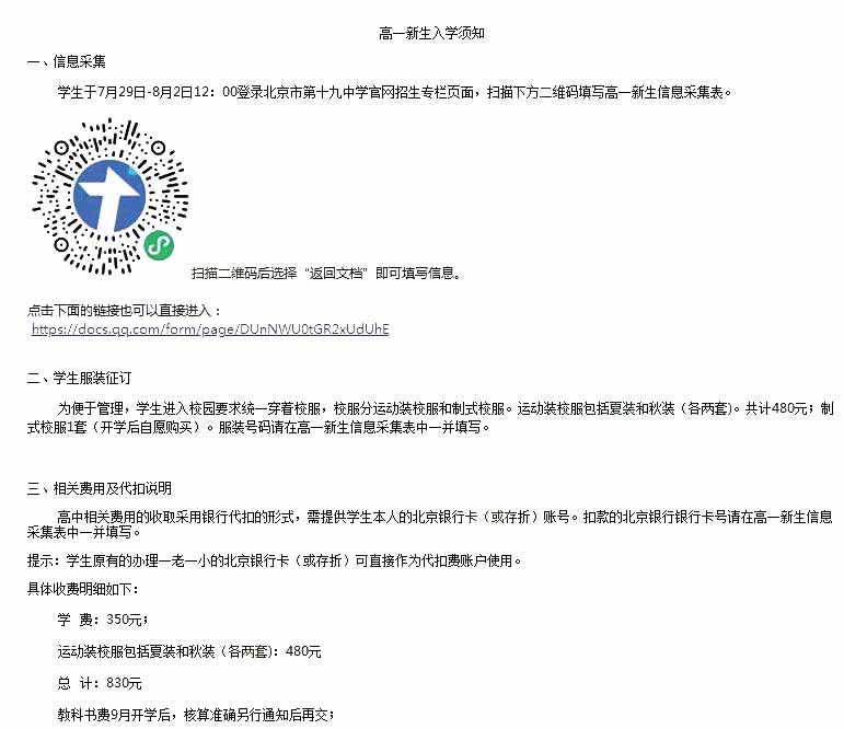 2022年北京十九中新高一入学安排出炉!北京admw360教研组整理分享相关信息,供大家参考。