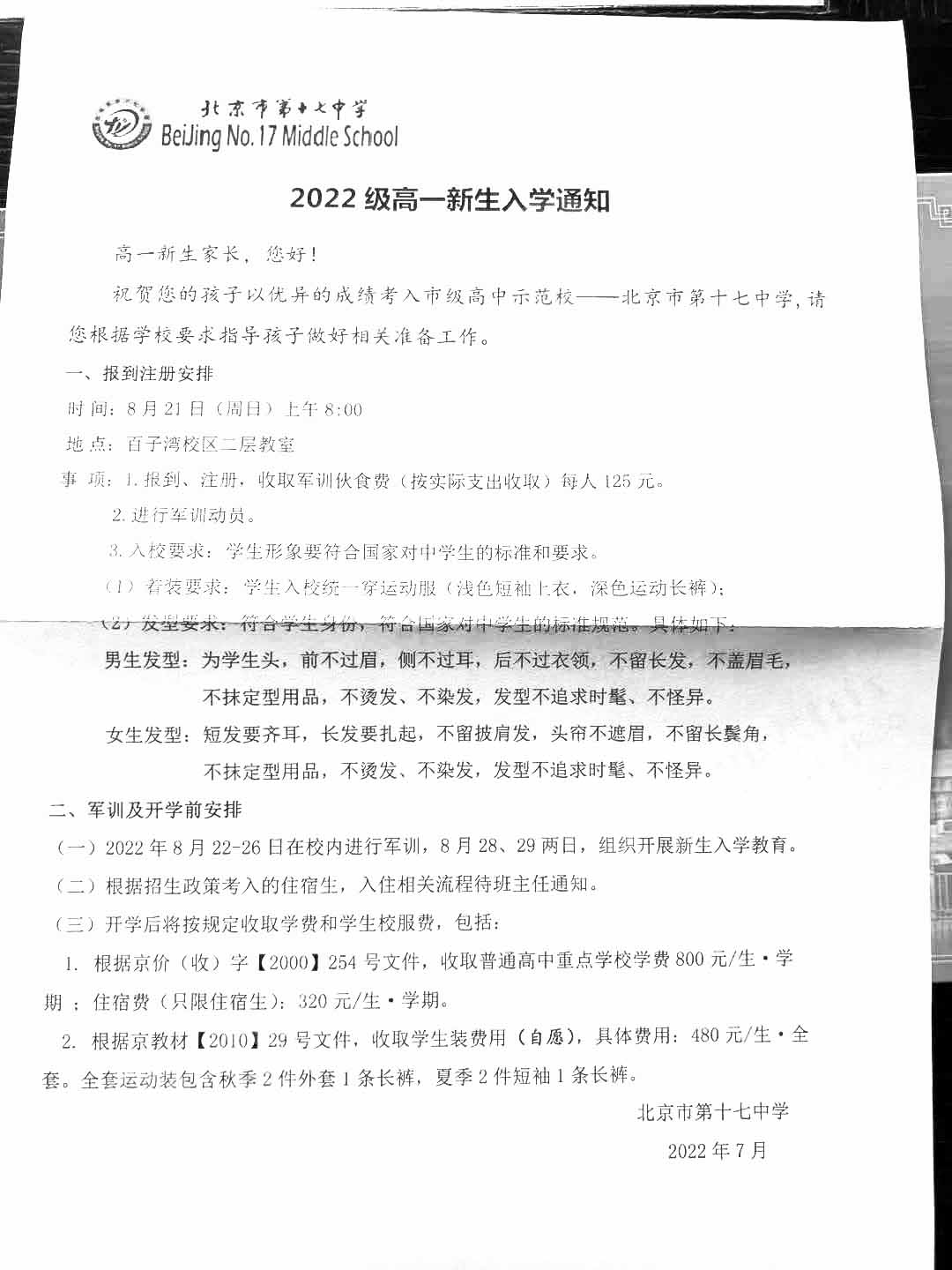 2022北京十七中新高一入学安排!北京admw360教研组整理分享相关信息,供大家参考。
