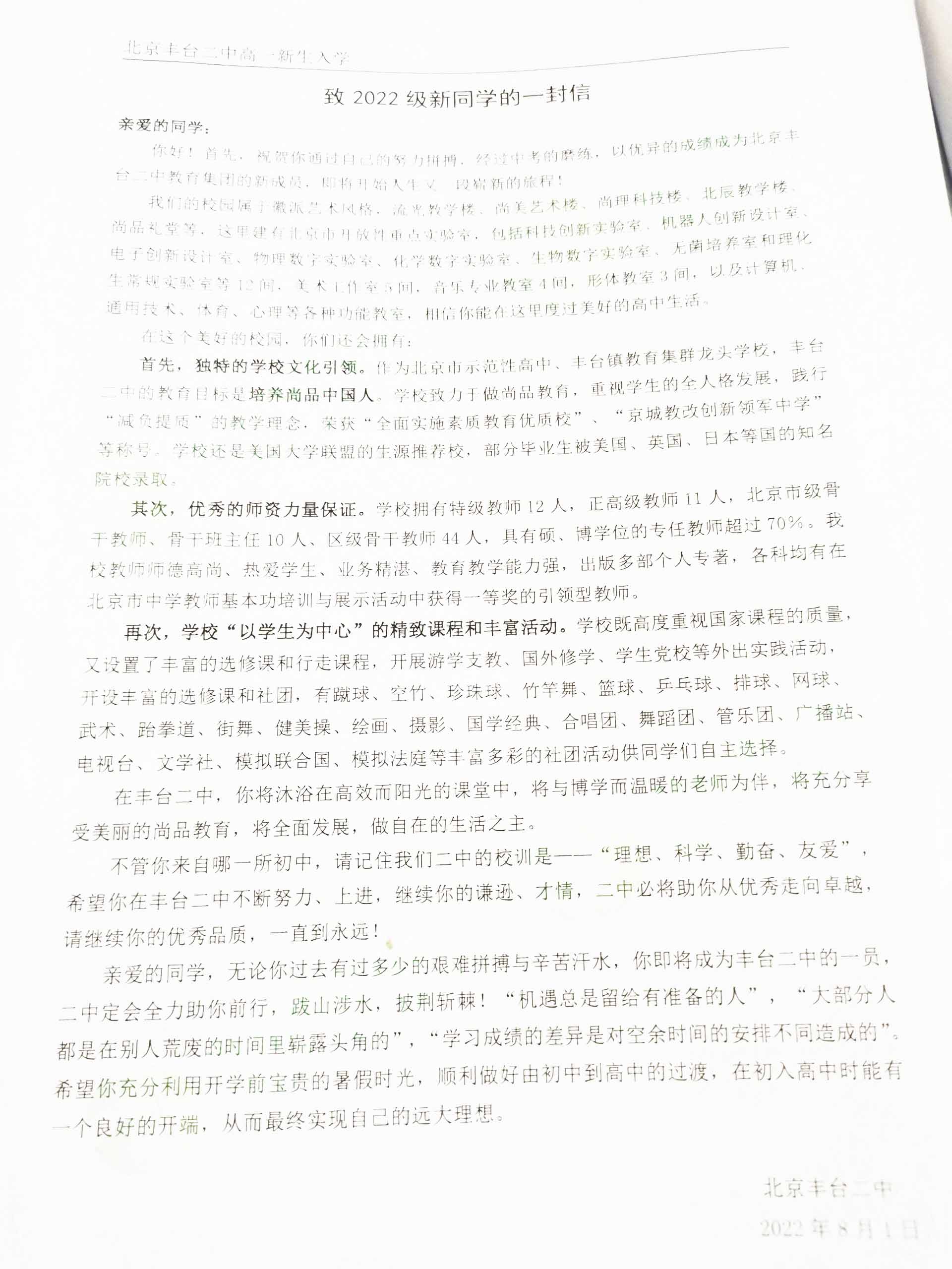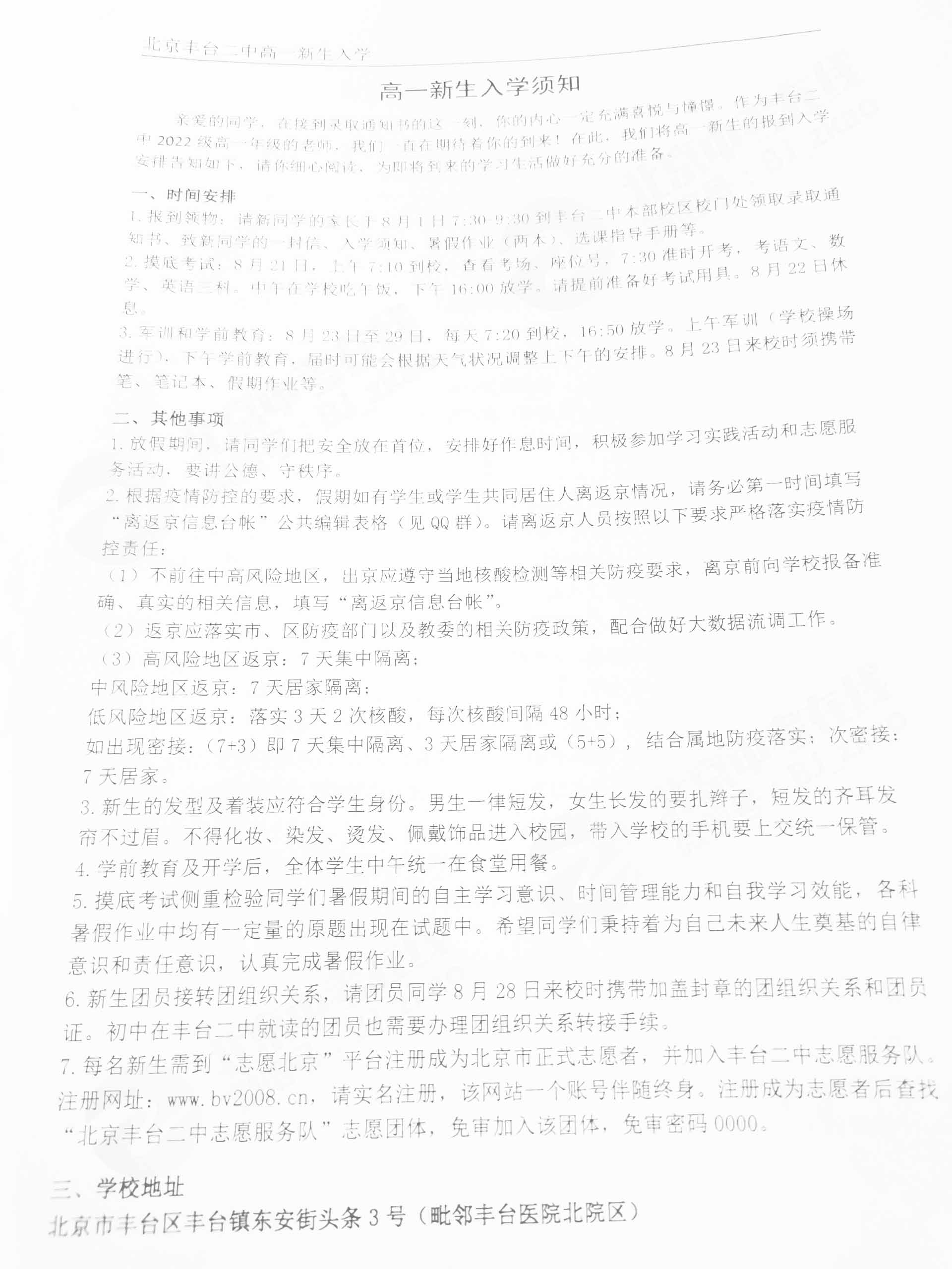 2022丰台二中新高一入学安排!北京admw360教研组整理分享相关信息,供大家参考。