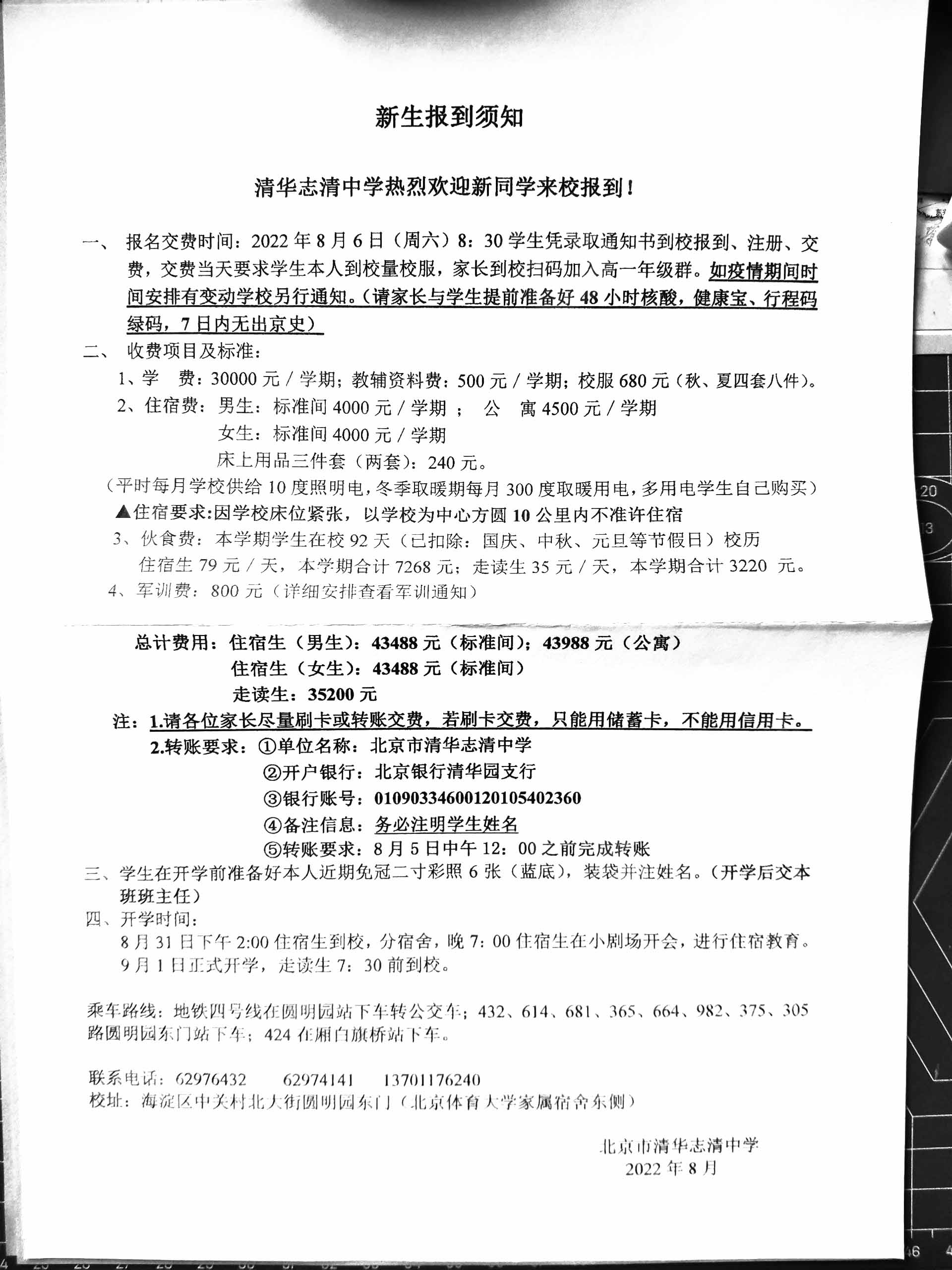 2022清华志清中学新高一入学安排!北京admw360教研组整理分享相关信息,供大家参考。