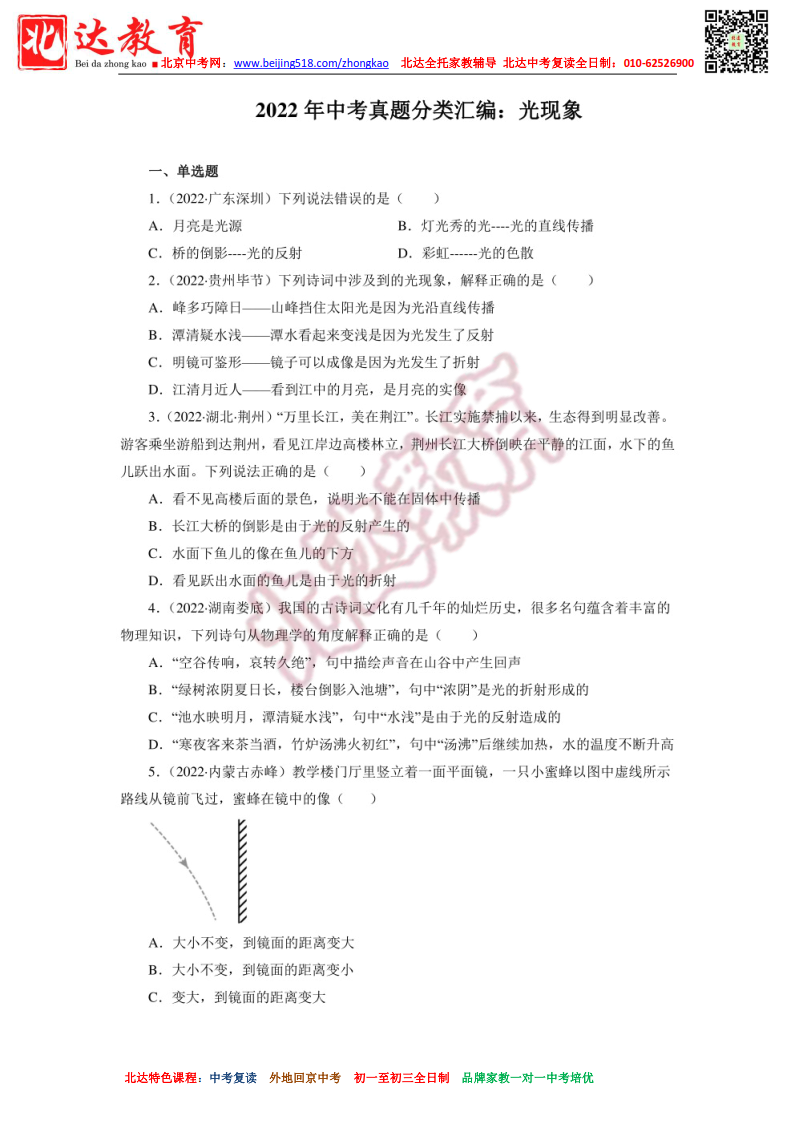 2022 年中考真题分类汇编: 光现象(附答案).pdf