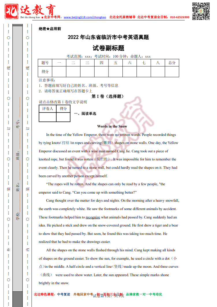 2022年山东临沂中考试题及答案汇总!北京admw360教研组整理分享相关信息,供大家参考。