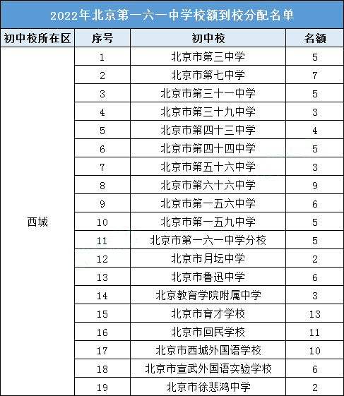 2022北京一六一中学校额到校名额都分配给了哪些初中校?北京admw360教研组整理分享相关信息,供大家参考。