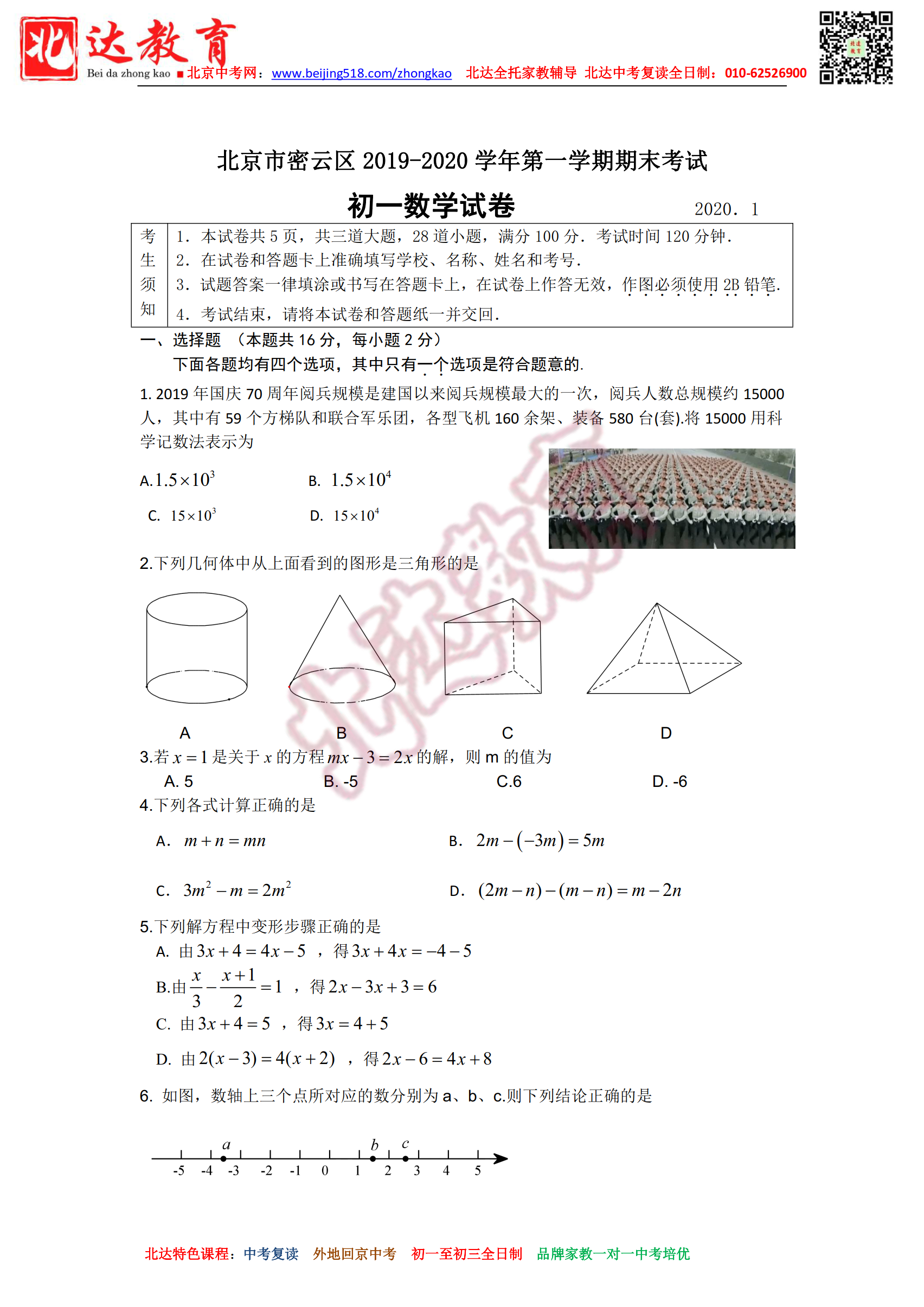 2019-2020学年密云初一(上)期末数学试卷.pdf