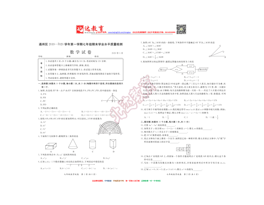 2019-2020学年通州初一(上)期末数学试卷.pdf
