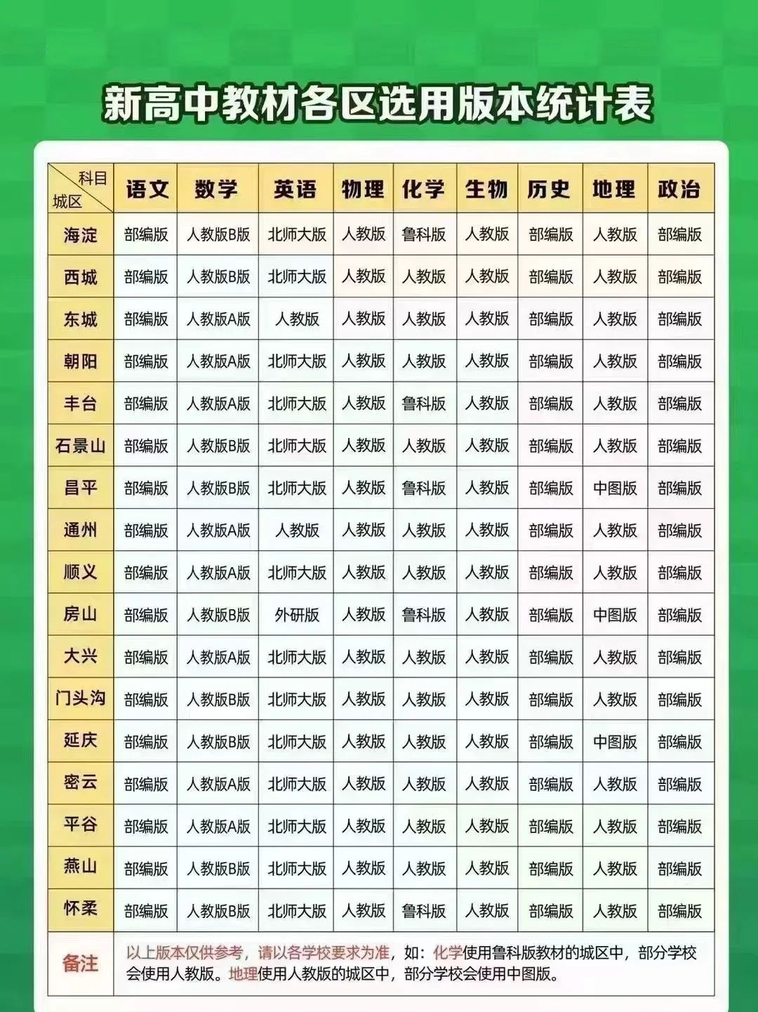 北京各区高中教材版本汇总!北京admw360教研组整理分享相关信息,供大家参考。