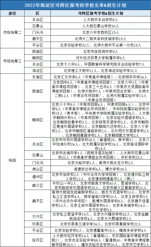 2022海淀区可跨区报考的学校有哪些?升学途径是什么?北京admw360教研组整理分享相关信息,供大家参考。