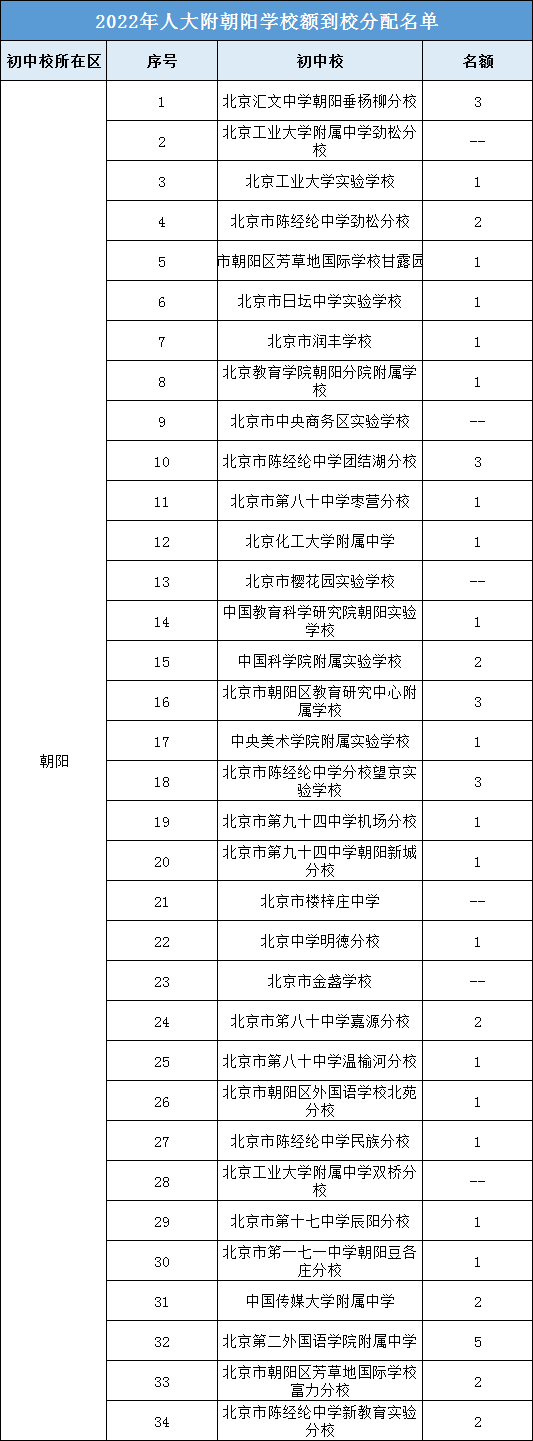 首页 校额到校 2022人大附朝阳学校校额到校名额都分配给了哪些初中校?