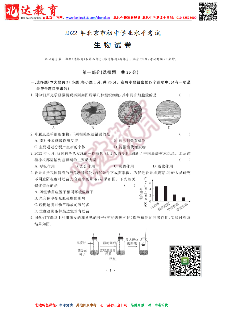 北京2022初二小中考生物试题及答案!北京admw360教研组整理分享相关信息,供大家参考。