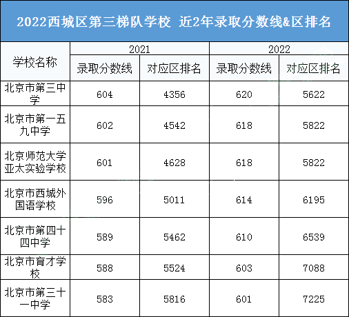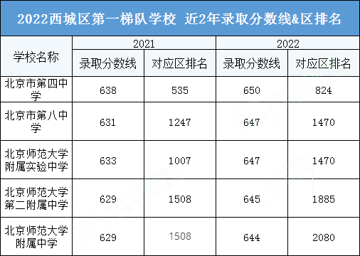 1、2022年西城区第一梯队包含西城四金刚及北师大附中,想要考近西城区第一梯队录取分数线在644分及分以上,录取考生排名大约在2080名左右。