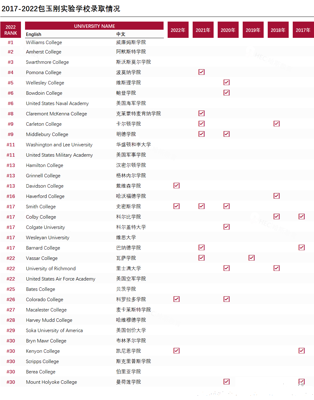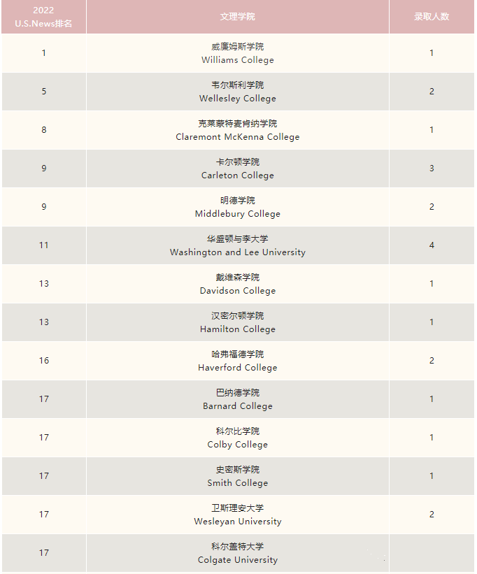 2022年包校美本文理学院录取结果如下: