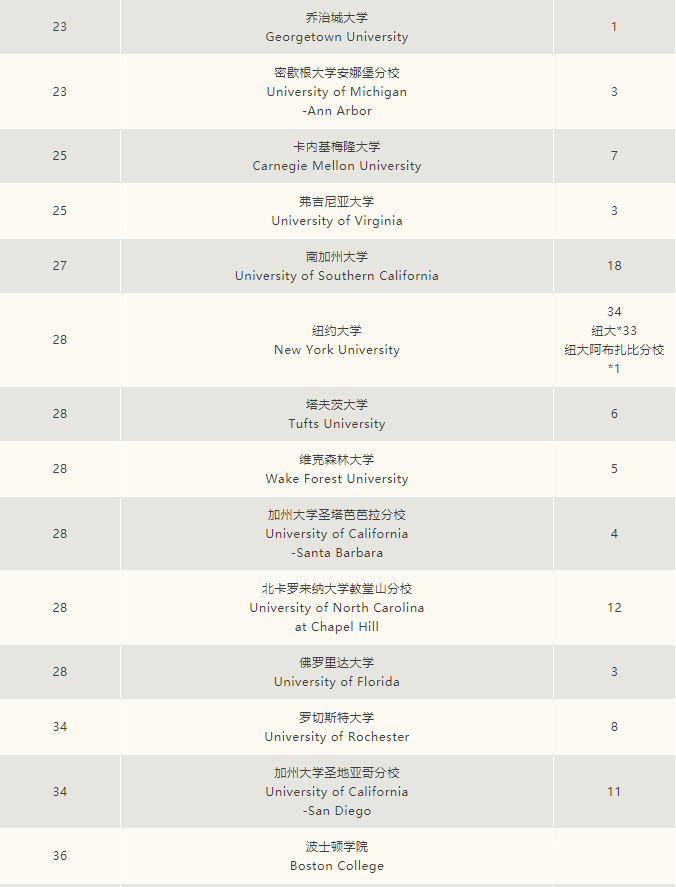 美国综合性大学前三十86封