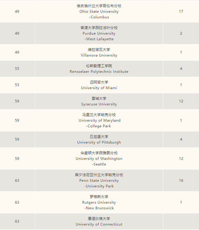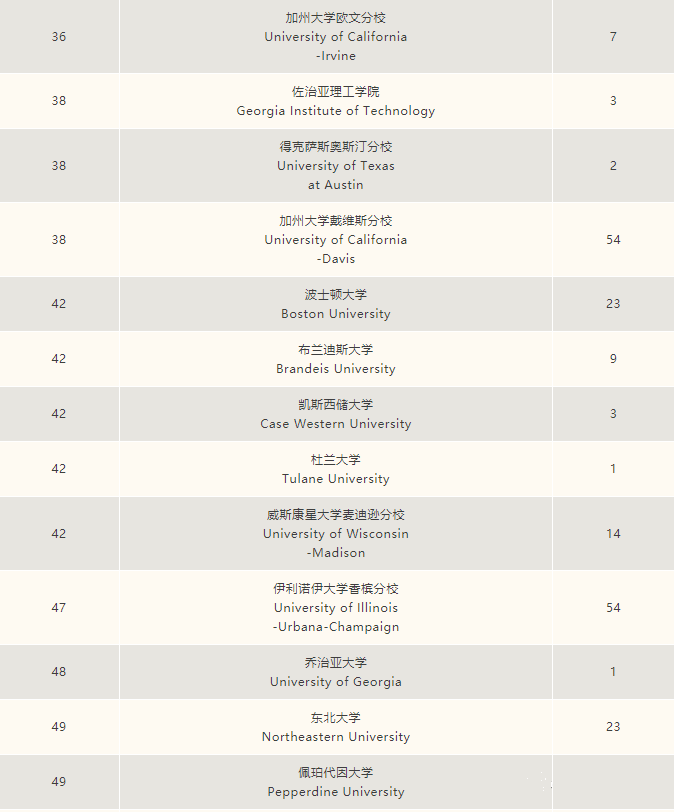 美国综合性大学前五十180封