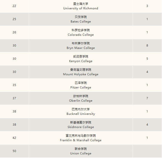 排名前三十的文理学院 10封
