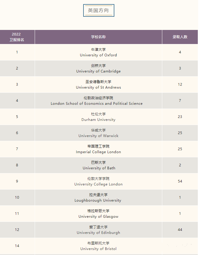 英国方向录取如下: