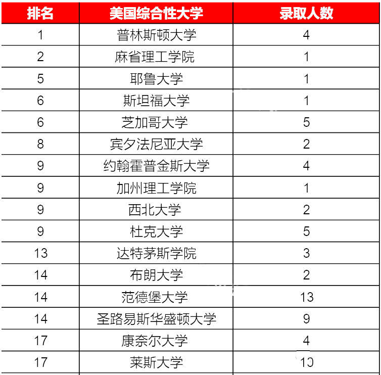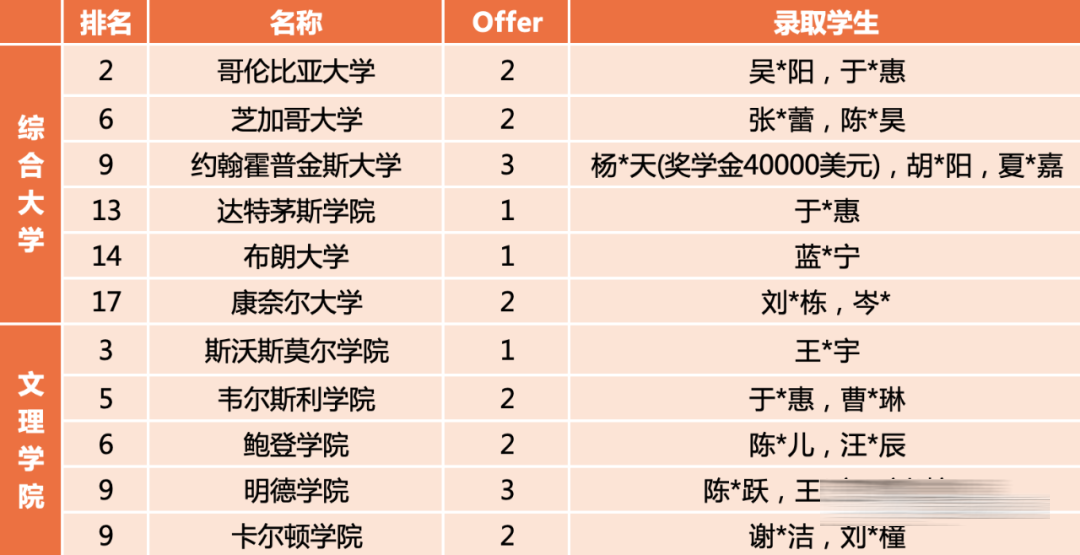 ◆美国藤校大学录取榜
