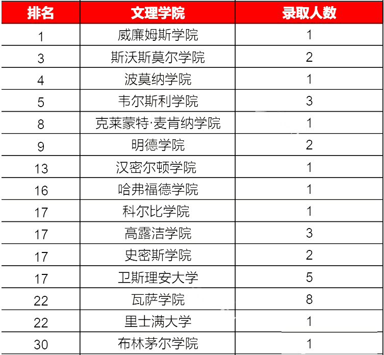 美国文理学院录取结果(部分)